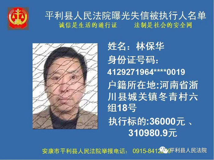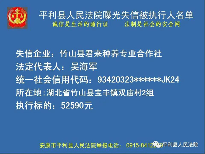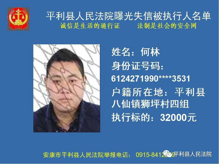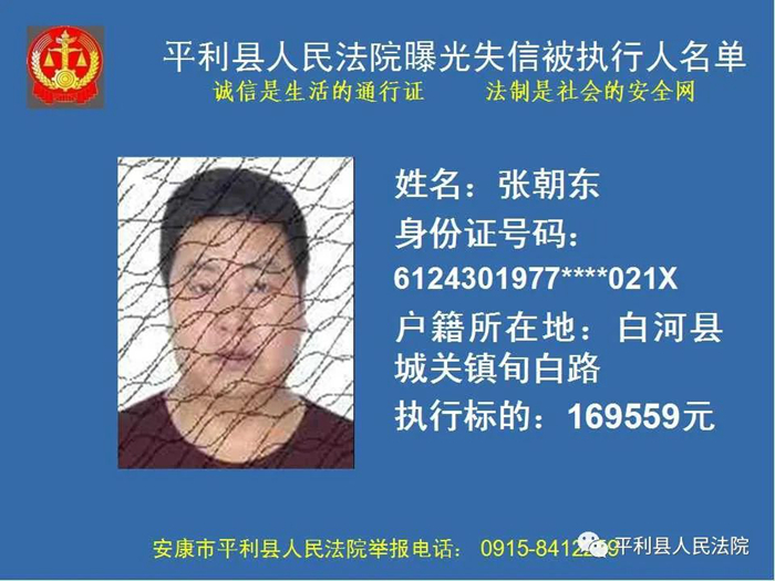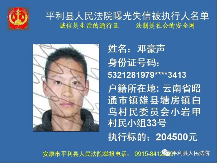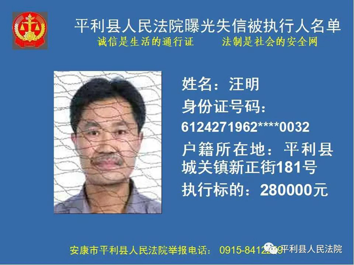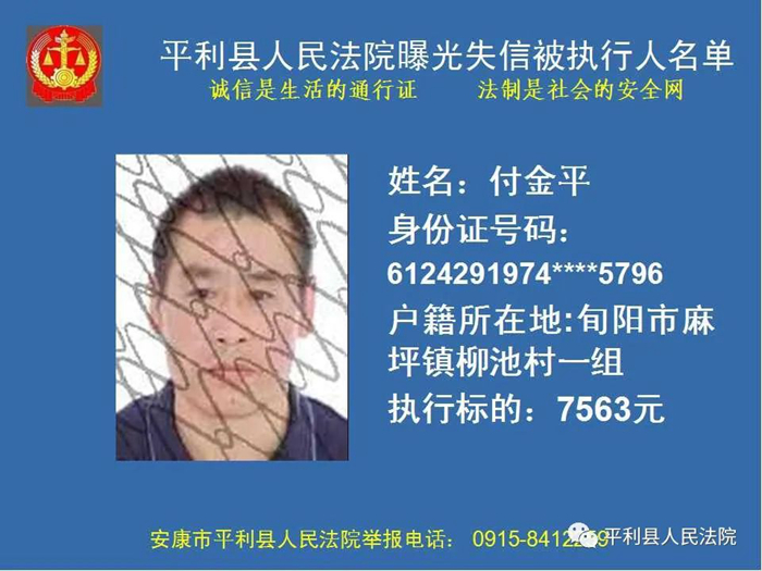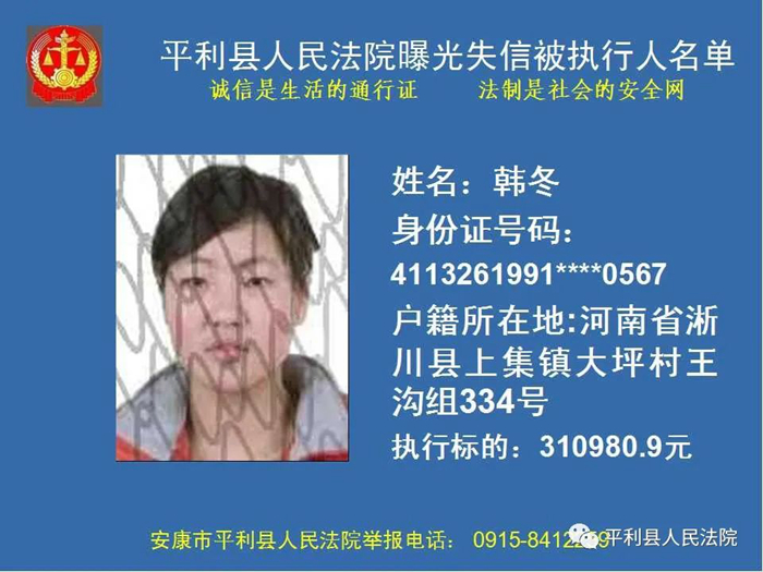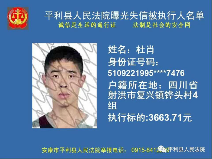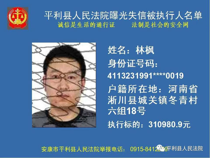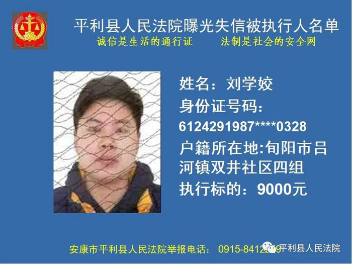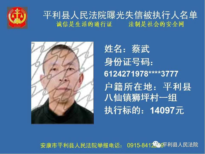 曝光失信 | 平利縣人民法院曝光失信被執行人名單(2022年第一、二季度)