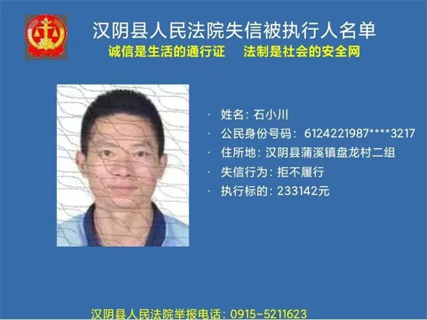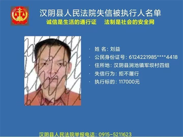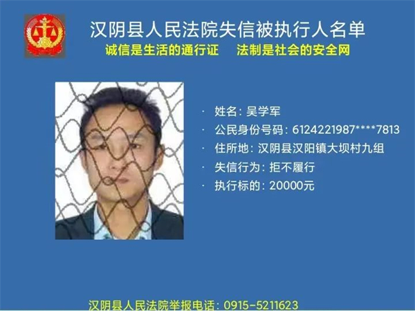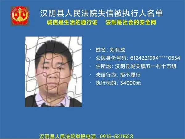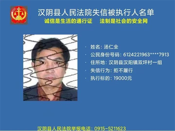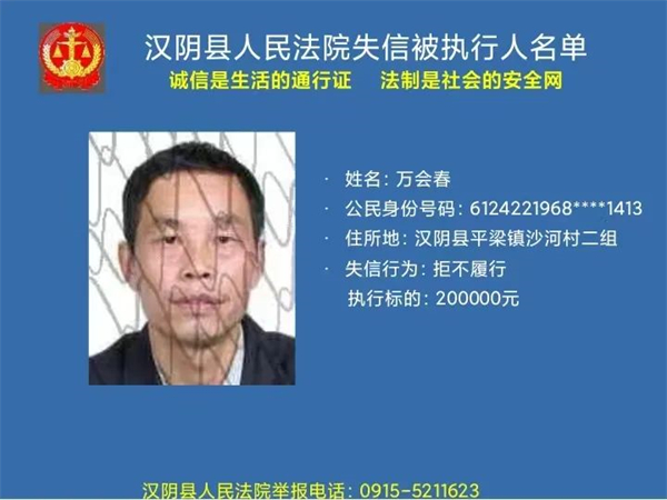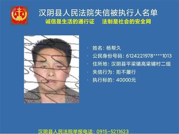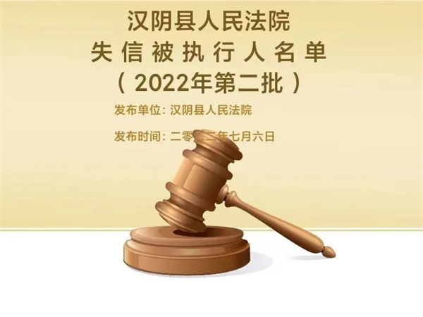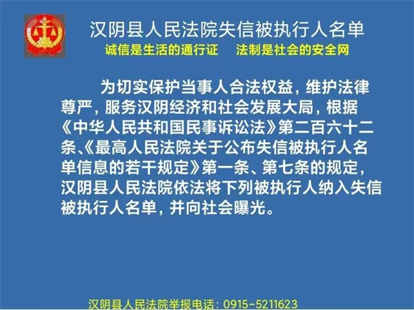 曝光失信 | 漢陰法院失信被執(zhí)行人曝光名單 (2022年第二批)