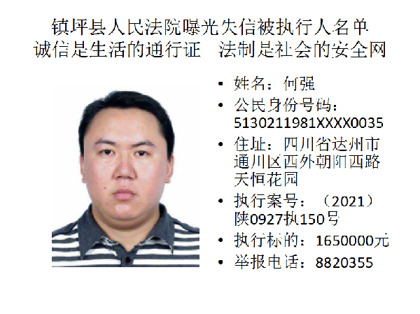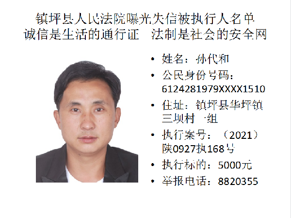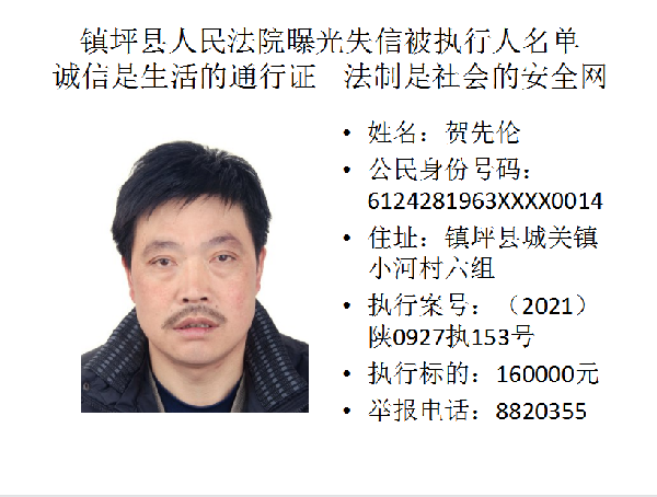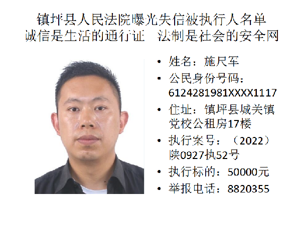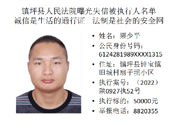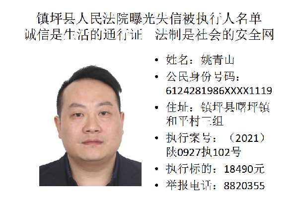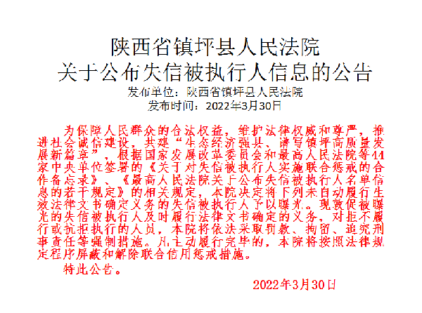 曝光失信 | 鎮坪法院2022年第一期失信人員名單公布