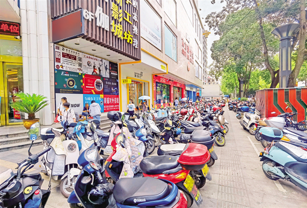 6月18日,在安康城區金州南路人行道上,部分車輛占用盲道、車身超出停車線(圖1),未按要求停放車輛(圖2),造成了安全隱患。(記者 張喬 攝)……