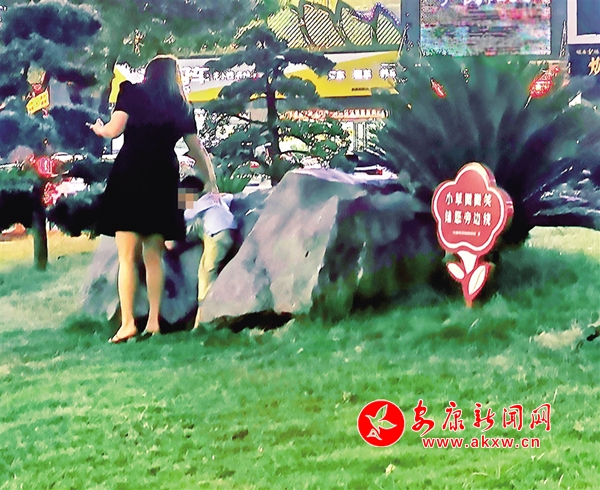 6月18日,有市民帶著孩子在安康城區西津漢江大橋(三橋)南頭街心綠地內玩耍,旁邊就是“小草微微笑 請您旁邊繞”的公益廣告牌(圖1)。不時還有摩托車、電動車從人行……