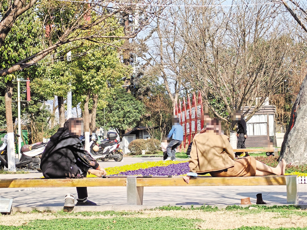 春節假期天氣晴好,不少市民、游客紛紛外出游玩,感受節日的輕松歡愉。記者在走訪桃花源過程中,發現有游客攀爬到景觀石頂部,示意同伴拍照,還有部分游客有踩踏……