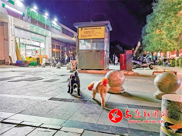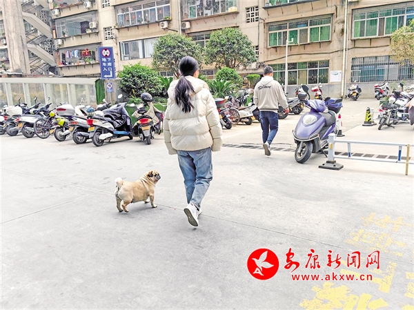 2月25日,安康中心城區某小區內有市民遛狗不牽狗繩。 鄭時根 攝……