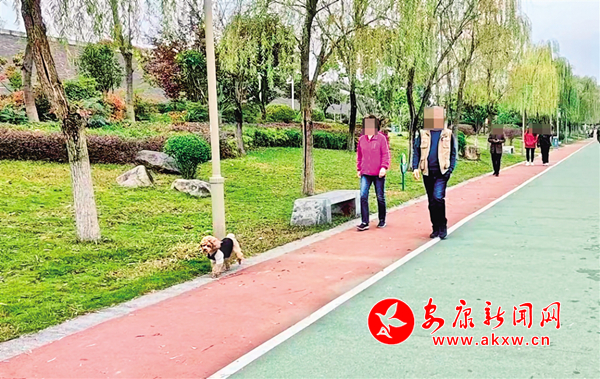 近日,在安康城區江灘公園江邊步道上,不時出現市民遛狗未牽繩現象。 馬歡 攝……