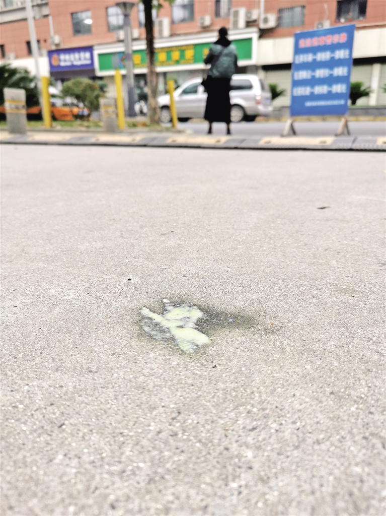 12月12日,安康中心城區大橋路育才路十字附近,存在隨地吐痰現象。記者 潘潤生 攝……