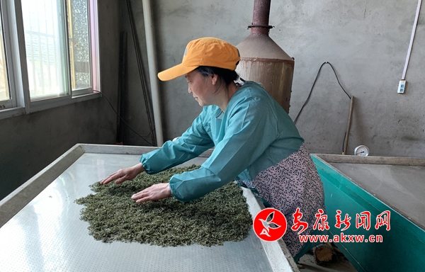 到了晚上便是炒制茶葉的時段,有時候楊明芳可能炒制到午夜三四點鐘,她老公則在早上6點鐘起床,騎車帶著茶葉到城里去售賣。現如今該合作社已吸納了全村60多戶貧困戶,楊明芳自己增收致富,也帶動了在合作社務工的貧困戶脫貧。