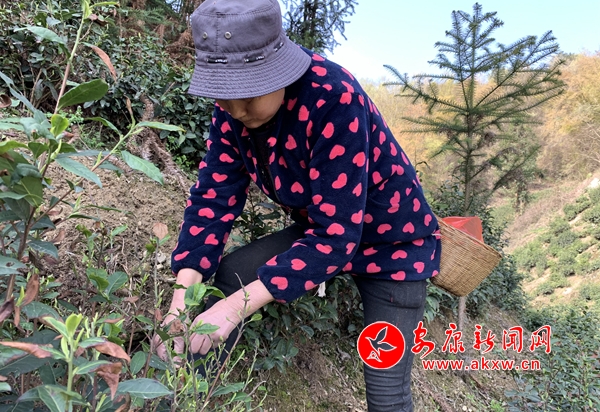 春風送暖,又吹綠了茶山。天才漸亮,瀛湖鎮橋興村十二組的楊明芳,就拎著竹籃,小心翼翼的爬上陡峭的茶山上,細心尋找綠葉中探出的鮮葉,將綠油油的嫩芽采摘進竹籃里。茶葉已成為了瀛湖鎮橋興村和火星村茶農們的致富之路。
