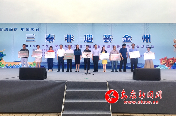 活動(dòng)啟動(dòng)儀式上,安康市政府副市長楊淼致辭,省文化和旅游廳副巡視員崔天民宣布全省“文化和自然遺產(chǎn)日”非遺宣傳展示主會(huì)場活動(dòng)啟動(dòng),相關(guān)領(lǐng)導(dǎo)向安康市第二批市級非遺生產(chǎn)性保護(hù)示范單位和基地授牌。