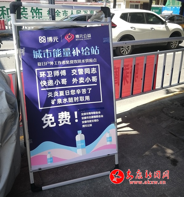 據了解,此次活動從7月22日陸續展開,至8月31日結束,愛心冰柜投放8個地點,分別是博元幸福城售樓部、高新管委會門口、高新幼兒園門口、江北安康濱江大道(扶貧開發局對面)、影劇院、大橋路(信合廣場對面)、安康中學(衛校十字)、大千印象城,礦泉水每天每個點投放8箱左右。tPk安康新聞網
