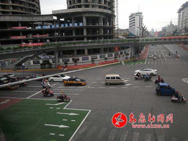 8月2日,記者在中心城區馬坎十字發現了道路新增綠色引導區域,記者從漢濱交警大隊了解到,目前城區除了馬坎十字之外,中心廣場十字、一橋橋南十字,東堤十字的三車等待區也在同步施劃中,警示車輛各行其道。