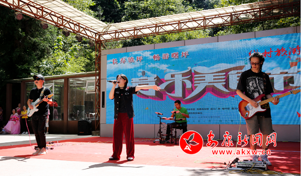 炎炎烈日擋不住游人的熱情,音樂、美食、美景在這里交融,八方來客在這里聚集,共享這一嗨翻全場的聽覺、視覺、味覺盛宴。由聯(lián)合村帶來的獅子舞拉開了文藝演出的序幕,百人旗袍秀、搖滾樂團(tuán)更是將整場演出推向了高潮。