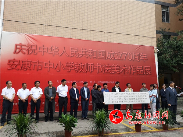 本網(wǎng)訊(實(shí)習(xí)記者 雷文鈺)為慶祝中華人民共和國(guó)成立70周年,安康市中小學(xué)教師,用一份特殊的禮物向偉大的祖國(guó)獻(xiàn)禮,9月24日上午,由安康市教育體育局主辦,安康市教研室、陜西省安康中學(xué)、安康市教育學(xué)會(huì)、安康市中小學(xué)美術(shù)教育研究會(huì)承辦,安康市書(shū)法家協(xié)會(huì)、安康市群藝館、陜西省于右任書(shū)法學(xué)會(huì)安康分會(huì)、陜南畫(huà)院協(xié)辦的“輝煌七十載,筑夢(mèng)新時(shí)代”慶祝新中國(guó)成立七十周年安康市中小學(xué)教師書(shū)法美術(shù)作品展在安康中學(xué)美術(shù)館啟幕。