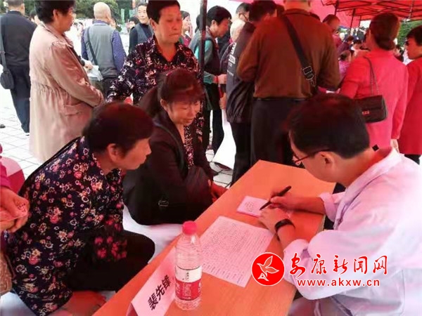 救心義診活動開始后,參展醫院工作人員現場發放宣傳單,提供專家義診咨詢,并為市民免費測血壓,測血糖,義診免費贈藥。活動現場測血壓、血糖,領取贈藥的群眾排起長隊,醫護人員主動攙扶行動不便的老人,耐心進行心血管疾病的防治及健康生活常識指導。