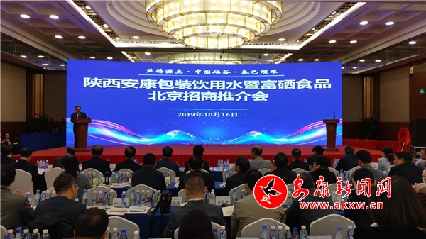 本網訊(記者 張世虎)金秋十月,豐收時節,由中共安康市委、安康市人民政府、陜西省工信廳、陜西省商務廳、陜西省工商聯、陜西省貿促會聯合主辦的陜西安康包裝飲用水暨富硒食品北京推介會10月16日在北京成功舉辦。