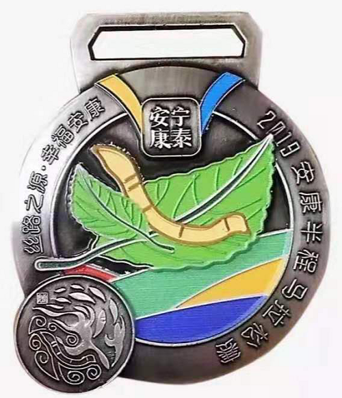 據(jù)獎牌設計者金沙介紹,本次完賽獎牌于十月初開始設計,10月29日正式公布。獎牌正面核心畫面選擇了出土于安康的一級文物—鎏金銅蠶,銅蠶附于桑葉之上,既突出了悠久的桑蠶文化,又是本次主題“絲路之源”的體現(xiàn)。