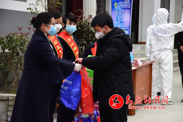 活動(dòng)現(xiàn)場(chǎng),白河縣人社部門、中國(guó)郵政集團(tuán)白河縣分公司為赴蘇務(wù)工人員贈(zèng)送了愛(ài)心禮包,預(yù)祝他們平安返崗。