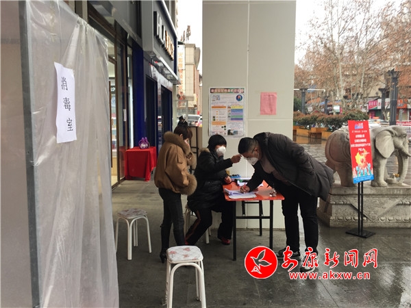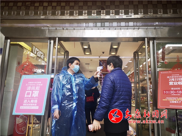 隨后,記者來到南方新世紀商場,顧客們在商場門口逐一進行測體溫、填信息、做消毒等入店前的準備工作。2Qu安康新聞網