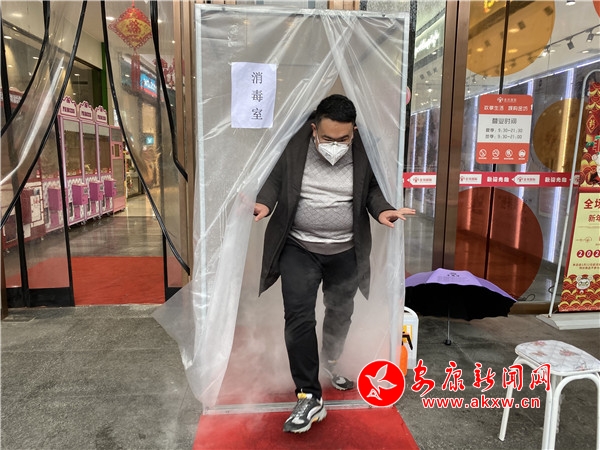 記者來到位于金州路的金坊國際購物廣場,該商場門口設置有一個顯眼的消毒室,前來購物的顧客須先測量體溫,然后進入消毒室消毒五秒以上,完成消殺過程,才能進去商場選購貨品。2Qu安康新聞網