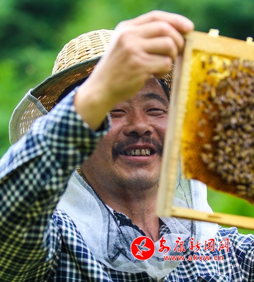 機遇總是留給有準備的人。從嵐皋縣到漢濱區,從18桶到5000箱,余升富經歷了很多波折,也嘗到了辛苦后的甜蜜。在養蜂的路上,余升富正在繼續探索,一個帶領當地群眾致富的“蜂王”,如同陽光下的蜂蜜,已然在王莽山下閃出了光芒。