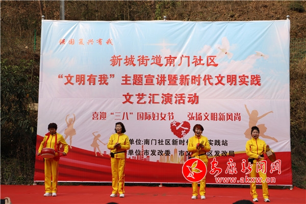 本網訊(記者 趙漪湉)為傳播文明理念,弘揚時代新風,鞏固和提升創建全國文明城市工作成果,3月6日,市發改委、市文聯、漢濱區發改局、新城街道南門社區新時代文明實踐站聯合在南門社區成功舉辦“文明有我”主題宣講暨新時代文明實踐站文藝匯演。zDw安康新聞網