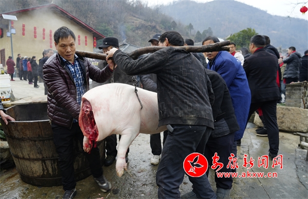 時(shí)至臘八,一大早,馬河社區(qū)的工作人員就開始熬煮臘八節(jié)的傳統(tǒng)美食——臘八粥,邀請(qǐng)游客們?cè)跍嘏闾鸬闹嘞阒校捕扰D八節(jié),迎接新年的到來(lái)。活動(dòng)現(xiàn)場(chǎng),殺年豬、吃庖湯、寫春聯(lián)、趕集市、辦年貨,濃濃的年味彌漫在整個(gè)鄉(xiāng)村。采蓮船、秧歌隊(duì)翩翩起舞,嗩吶聲、鑼鼓聲、聲聲入耳;魔芋豆腐、豆腐干、紅薯粉條、蜂蜜、臘腸……不少來(lái)自田間地頭的農(nóng)特產(chǎn)品紛紛亮相,受到游客們的追捧,大家爭(zhēng)相購(gòu)買。