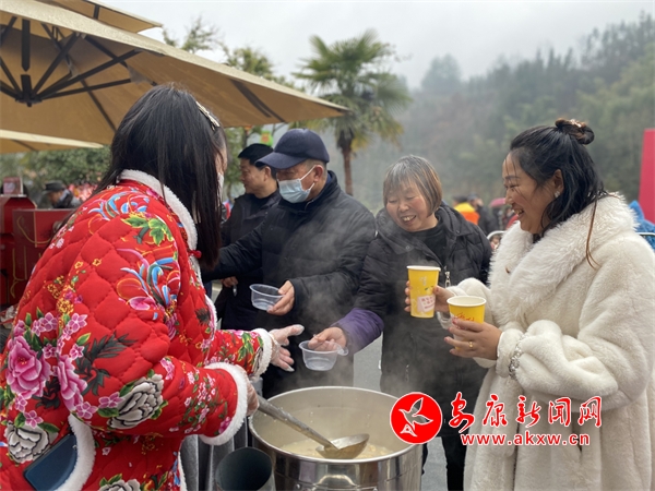 現場還開展了形式多樣的農特產品展銷、美食體驗等系列農文旅活動,讓現場群眾感受了新春“趕大集”的熱鬧氛圍。同時還進行了寫春聯、送福字、照全家福等年俗活動,為大家送上新春祝福。活動當天恰逢“臘八節”,主辦方制作了臘八粥,免費向觀眾提供。