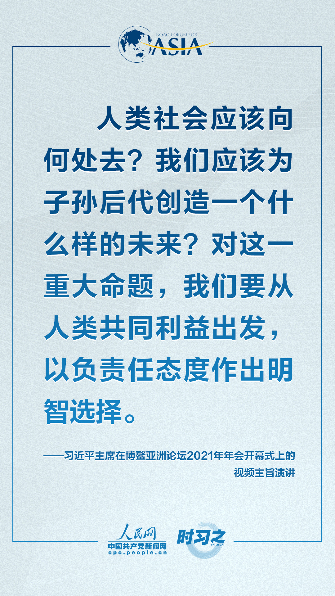 4月20日上午,博鰲亞洲論壇2021年年會開幕式在海南博鰲舉行,國家主席習(xí)近平以視頻方式發(fā)表題為《同舟共濟(jì)克時艱,命運(yùn)與共創(chuàng)未來》的主旨演講。面對“人類社會應(yīng)該向何處去?我們應(yīng)該為子孫后代創(chuàng)造一個什么樣的未來?”的重大命題,習(xí)近平這樣對世界說。qTz安康新聞網(wǎng)