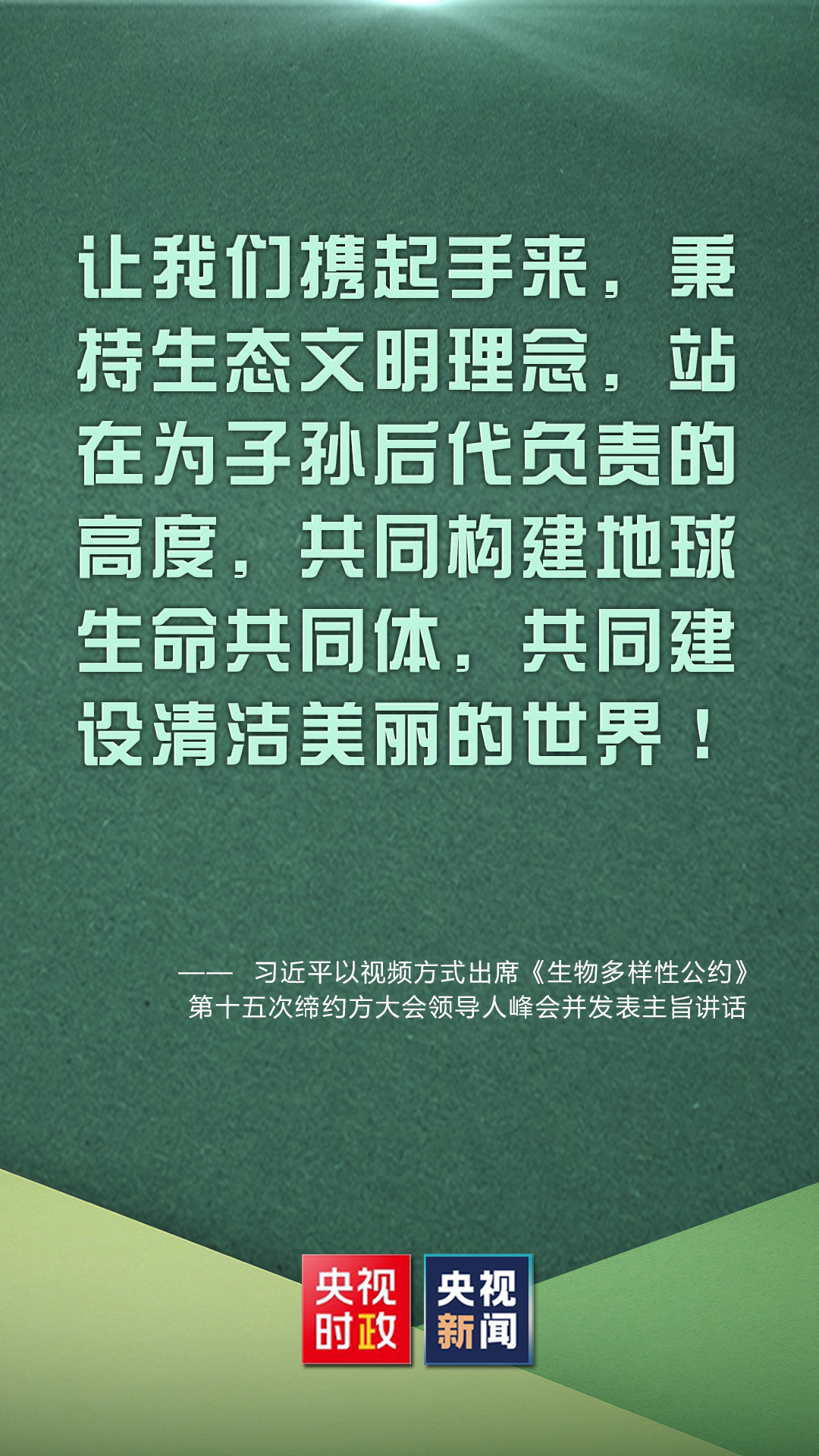 國家主席習近平12日下午以視頻方式出席在昆明舉行的《生物多樣性公約》第十五次締約方大會領導人峰會并發表主旨講話。
