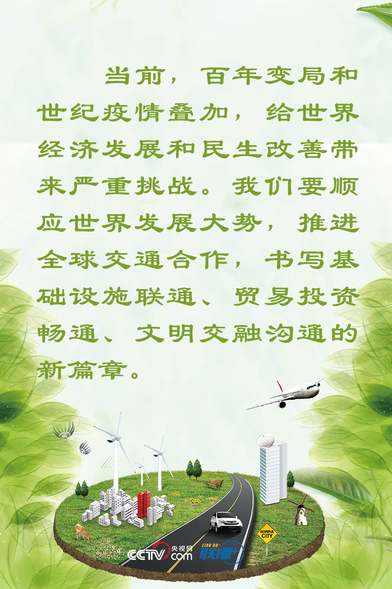 10月14日,習(xí)近平主席以視頻方式出席第二屆聯(lián)合國全球可持續(xù)交通大會(huì)開幕式并發(fā)表題為《與世界相交 與時(shí)代相通 在可持續(xù)發(fā)展道路上闊步前行》的主旨講話,深入分析當(dāng)前世界形勢,提出五點(diǎn)倡議,為推進(jìn)全球交通合作貢獻(xiàn)中國智慧。