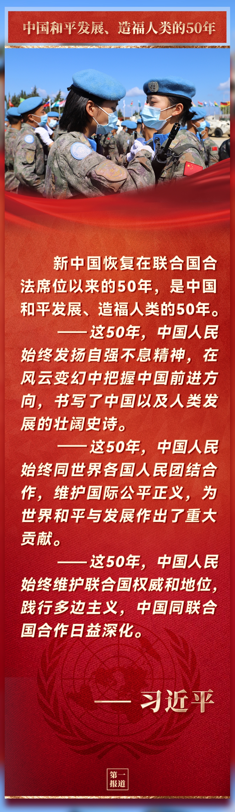 新中國恢復在聯合國合法席位以來的50年,是中國和平發展、造福人類的50年。