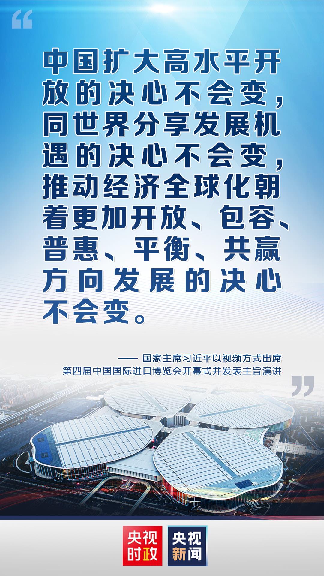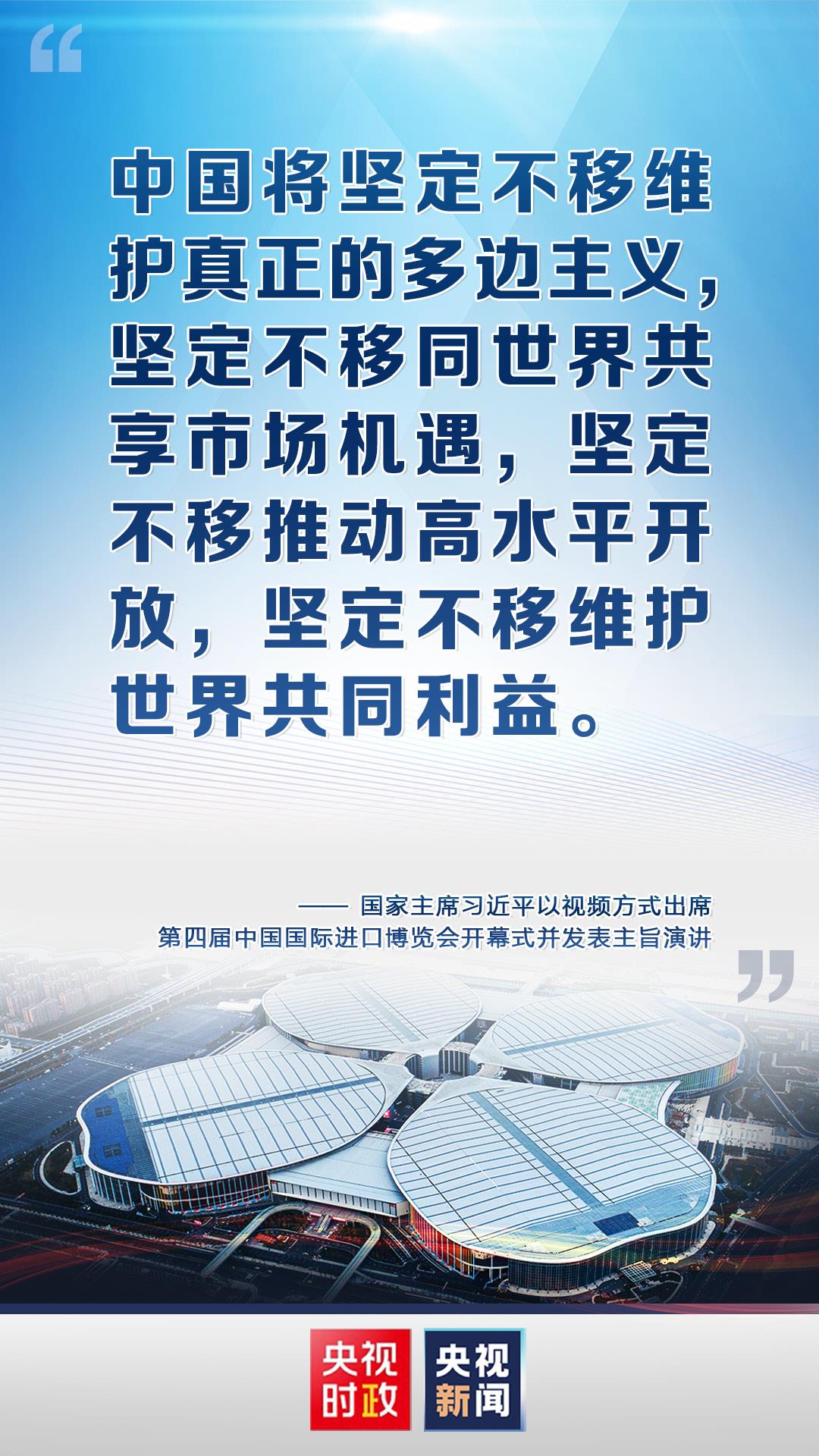 國家主席習近平4日以視頻方式出席第四屆中國國際進口博覽會開幕式并發表主旨演講。
