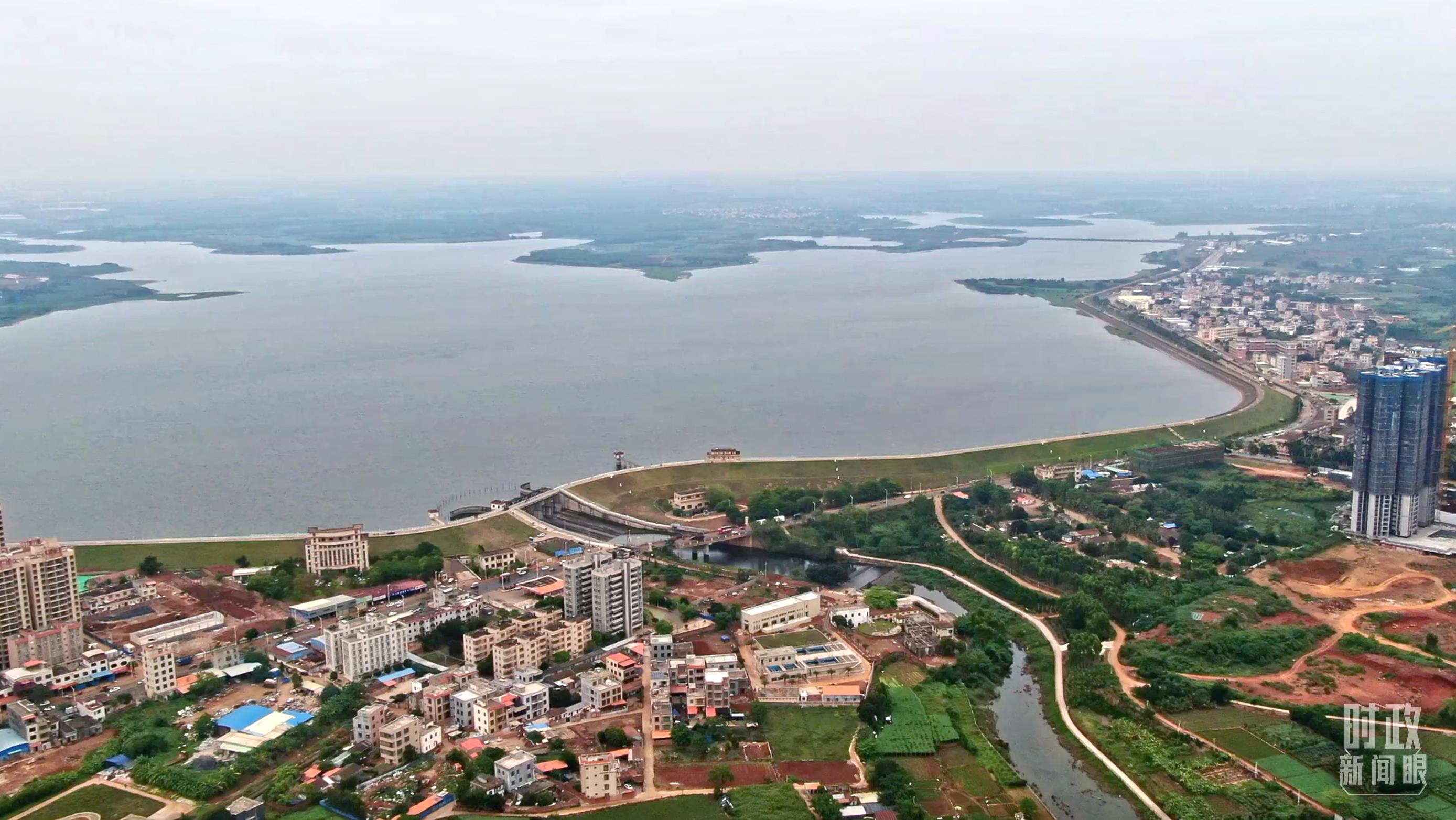 △水庫沿岸的城市。(總臺央廣記者潘毅拍攝)