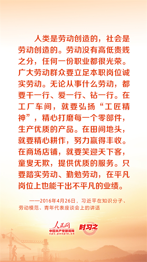 人民創(chuàng)造歷史,勞動(dòng)開創(chuàng)未來。黨的十八大以來,習(xí)近平總書記始終心系全國廣大勞動(dòng)者,激勵(lì)廣大勞動(dòng)者在平凡崗位上續(xù)寫不平凡的故事。在“五一”國際勞動(dòng)節(jié)到來之際,讓我們重溫總書記的諄諄話語,用辛勤勞動(dòng)為經(jīng)濟(jì)社會(huì)發(fā)展貢獻(xiàn)力量。FeR安康新聞網(wǎng)