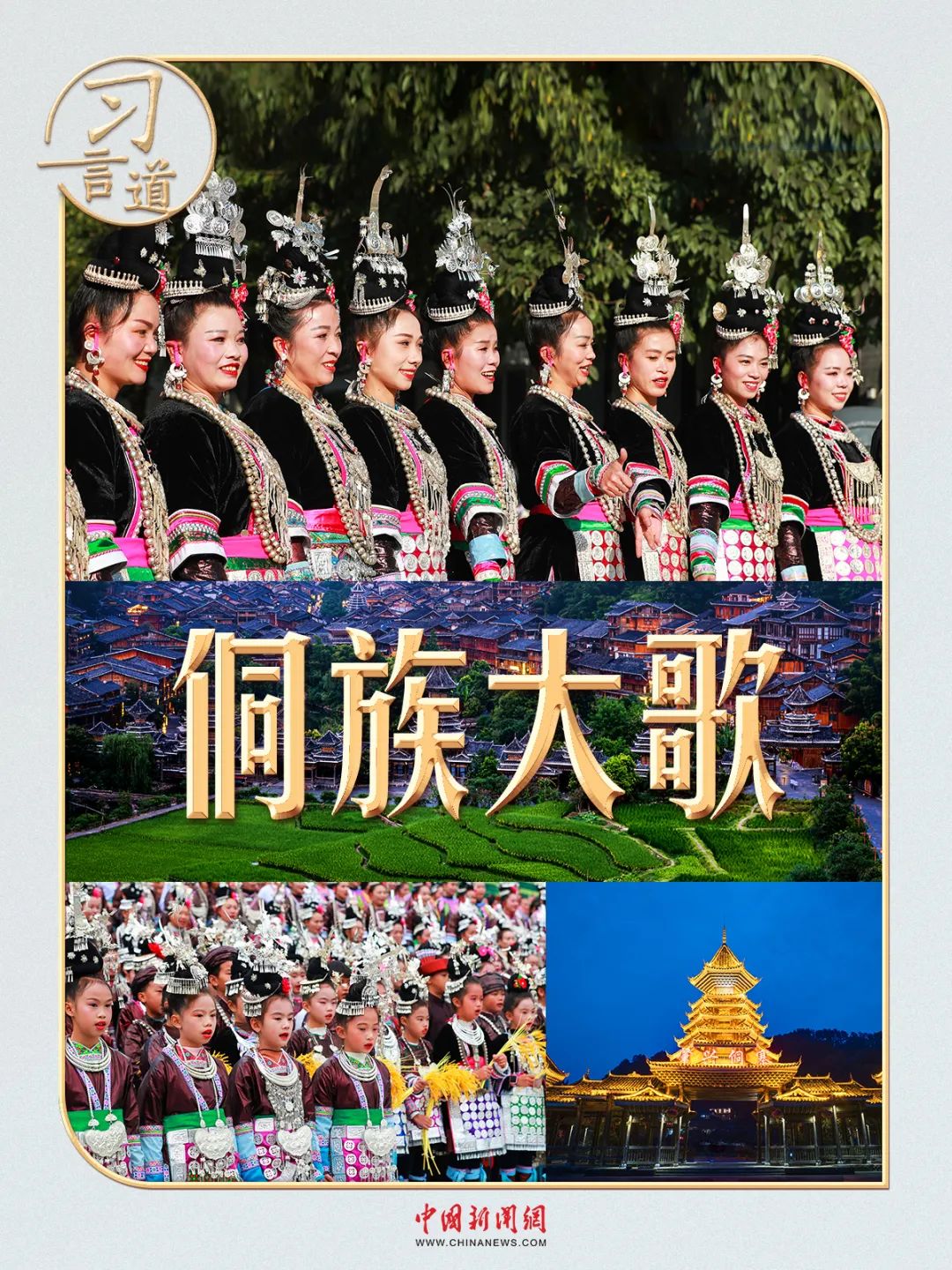 3月17日,習近平總書記來到貴州黎平縣肇興侗寨考察,同鄉親們親切交流。身著民族盛裝的村民,唱起了世代相傳的侗族大歌。