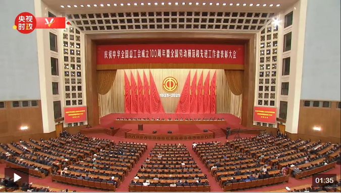 △視頻:慶祝中華全國總工會(huì)成立100周年暨全國勞動(dòng)模范和先進(jìn)工作者表彰大會(huì)隆重舉行
