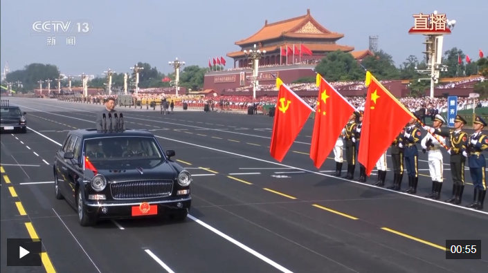 偉大旗幟光耀千秋。中國共產黨黨旗、中華人民共和國國旗、中國人民解放軍軍旗在受閱部隊最前方迎風招展。檢閱車行進至黨旗、國旗、軍旗前,敬禮號角響起,習近平停車肅立,以注目禮向三面旗幟莊嚴致敬。 Spp安康新聞網