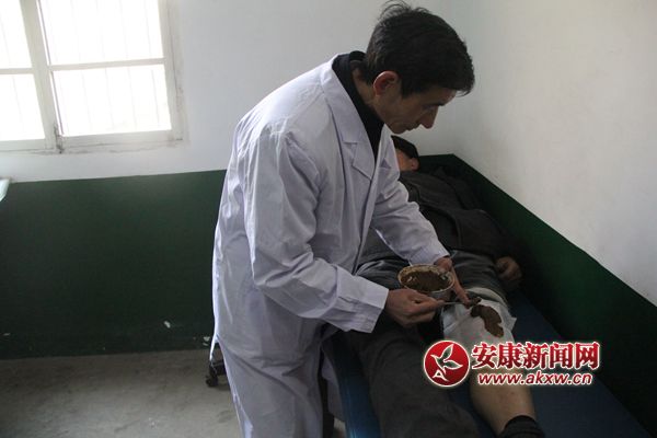 肖明國(guó)在給類風(fēng)濕關(guān)節(jié)炎患者涂抹草藥