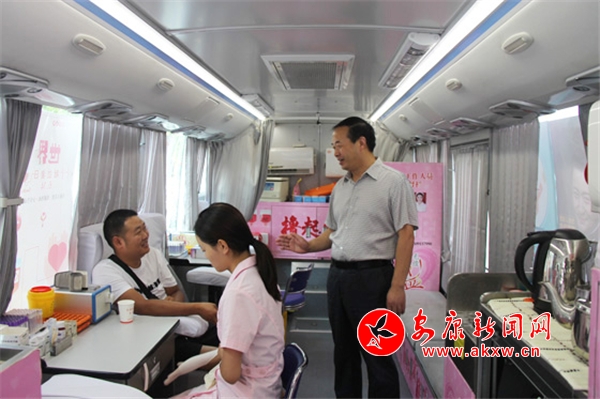 羅善冬是當天第一位走上車的獻血者,他今年36歲,在安康工作。羅大哥說,這是他第三次獻血,第一次是在市中心廣場的獻血車上,當時因為害怕,只捐獻了200毫升血液,后來他又特意多關注了些獻血知識,了解到獻血有助于提供造血功能,降低血液粘稠度,對健康有好處,所以從第二次開始他都捐400毫升。羅大哥還告訴我們,他是嵐皋縣大道河鎮人,工作人員立刻高興地告訴他,我們的采血車今天已經開到了嵐皋縣,明天就會去大道河鎮開展獻血活動。羅大哥笑著說:“真是巧了,我是大道河人,你們明天去我家鄉采血,雖然我趕不上,但今天我在市里獻了血, 這份愛心也算是‘殊途同歸’了!”