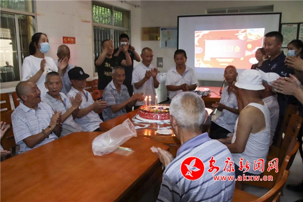 活動(dòng)現(xiàn)場(chǎng),他們?yōu)槔先藗兯腿ヅD獭⒌V泉水、牙膏等生活用品,宣講防疫小知識(shí),并為11位老人集體慶生,為他們精心準(zhǔn)備了生日蛋糕和禮品。老人們圍桌而坐,一起唱生日歌,現(xiàn)場(chǎng)其樂融融。