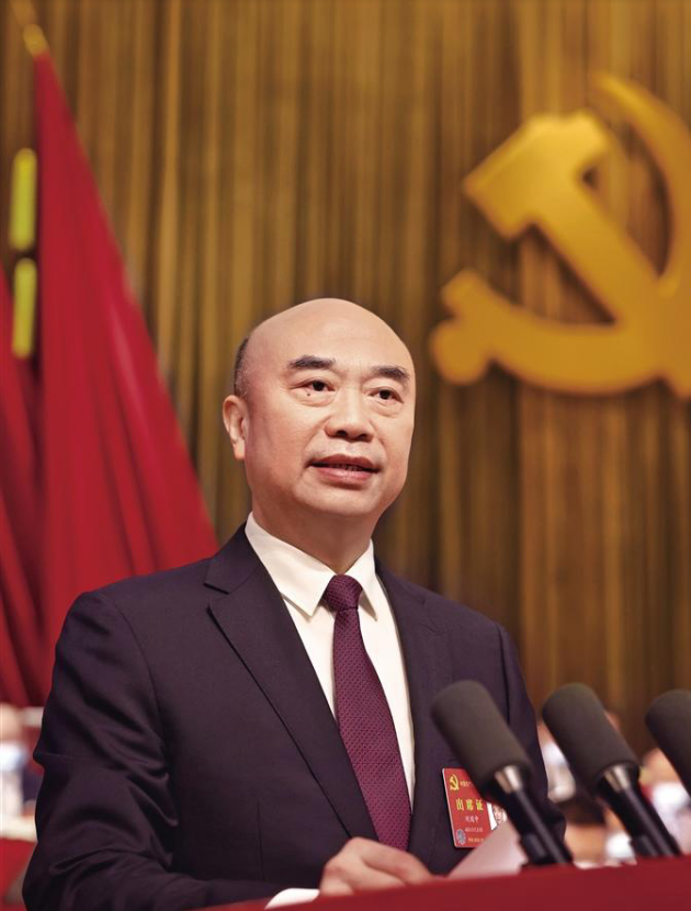 劉國中代表中共陜西省第十三屆委員會(huì)向大會(huì)作報(bào)告。