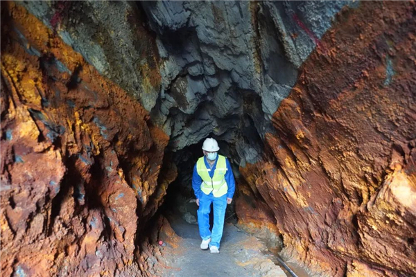 ↑4月9日,工作人員在白河縣卡子鎮鳳凰村一處廢棄硫鐵礦洞內勘查。