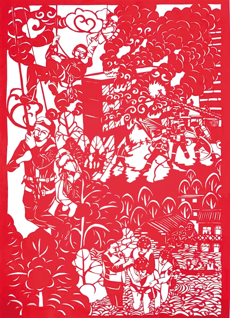 2022年,張莉的剪紙作品在“我與火焰藍(lán)”安康消防授旗訓(xùn)詞三周年風(fēng)采繪畫大賽中,榮獲“成人組優(yōu)秀作品獎(jiǎng)”,并被主辦方收藏。2023年張莉帶隊(duì)參加“德潤(rùn)安康”安康市首屆校園科技藝術(shù)節(jié),在剪紙區(qū),小隊(duì)員們發(fā)揮巧思妙想,精心設(shè)計(jì)、細(xì)心折剪,只見刀尖一開一合,紅紙不斷翻轉(zhuǎn),一幅幅栩栩如生、惟妙惟肖的作品就讓觀眾親眼見證了“刀光剪影”的神奇。隊(duì)員們嫻熟的技藝,精美的作品迅速吸引了許多人駐足參觀。Hkt安康新聞網(wǎng)