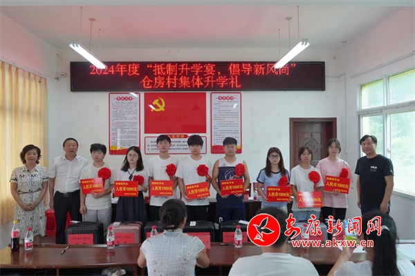 自2017年白河縣首場集體升學禮在倉房村順利舉辦以來,倉房堅持村連續七年為準大學生們舉辦集體升學禮儀式。8月9日,倉房村攜手市中醫醫院和縣殘聯在全鎮率先開展集體升學禮儀式,在儀式上市中醫醫院和縣殘聯分別為準大學生們送上助學金和行李箱,并勉勵他們求學路上要堅定理想,培養良好的人生觀、價值觀,勤奮學習練就過硬本領,回報家鄉。Eqh安康新聞網