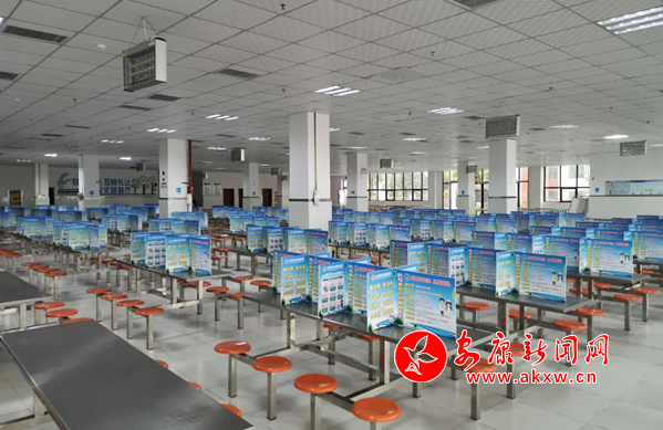 學校在食堂復工前,對食堂工作人員實施了嚴格的健康篩查。工作中嚴格按照每日監測消毒措施,做好個人健康監測。食堂內環境衛生及餐具消毒,做到謹慎細致。師生就餐前,統一按要求洗手,取餐窗口一路列隊,且前后左右間距1米。就餐時每桌采用擋板進行隔斷,避免面對面交叉。取餐就餐均分級分班錯峰錯時進行,避免人員聚集。