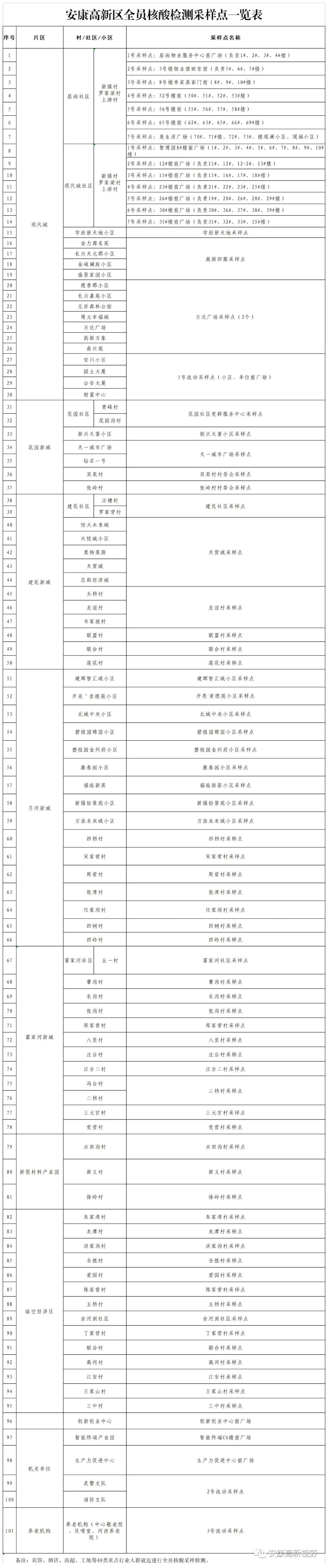 附件:安康高新區全員核酸檢測采樣點一覽表tQm安康新聞網