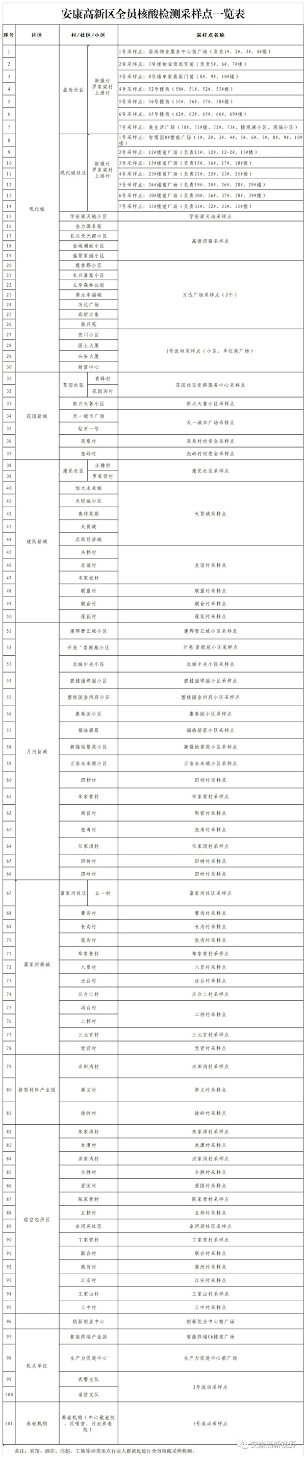附件:安康高新區全員核酸檢測采樣點一覽表Z8p安康新聞網