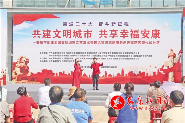 9月9日,一場以“共建文明城市,共享幸福安康”為主題的文藝演出和理論宣講活動在高新現(xiàn)代城社區(qū)舉行。整場活動,除了有群眾喜聞樂見的文藝節(jié)目,還設(shè)置有創(chuàng)建知識問答互動和創(chuàng)文知識專題宣講。現(xiàn)場,志愿者們還熱情地向群眾發(fā)放印有創(chuàng)文內(nèi)容的宣傳冊、涼扇、垃圾袋等,大家紛紛贊揚(yáng):“形式生動活潑,宣傳入腦入心!”