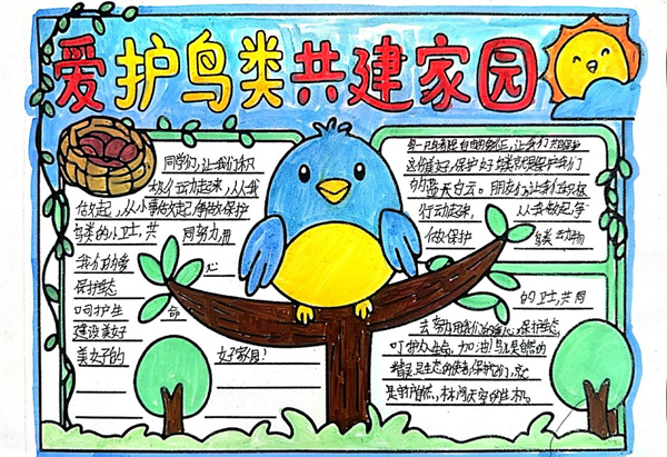 守護藍天精靈,共享美好家園!《安康高新區愛鳥護鳥倡議書》發布以來,全區的孩子們積極行動,他們用畫筆以純真之心勾勒出對鳥兒的關愛與守護。他們把對鳥兒的喜愛融進顏料,將守護的心愿畫入畫紙。稚嫩的筆觸下,有給小鳥搭建的溫暖巢穴,有禁止捕鳥的醒目標語,有鳥兒在藍天自由翱翔的愜意,有人類與鳥兒和諧共處的溫馨,有孩子們與鳥兒牽手同行的幻想…… (通訊員 劉松)SrP安康新聞網