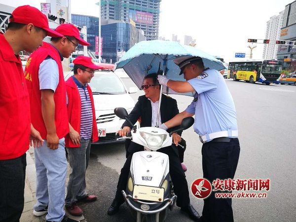 高新交警聯合6部門志愿者糾正非法加裝遮陽傘