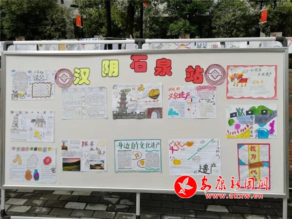 此次展板按地域文化特色,分為漢濱區站、旬陽平利站、漢陰石泉站、鎮坪站、紫嵐寧站五大板塊。每一張手抄報,從設計到排版,從書寫到繪畫,都各具特色:這里面有對壯美河山的贊美,有對雄偉建筑的欽佩,有對安康區縣奇觀異景、民俗文化的自豪……圖文并茂的手抄報吸引了全校師生駐足觀賞,嘖嘖稱贊,更有學生拿著紙筆認真地做記錄。xEu安康新聞網
